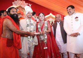 Madhya Pradesh : मुख्यमंत्री डॉ. यादव के पुत्र डॉ. अभिमन्यु और डॉ. इशिता सामूहिक विवाह सम्मेलन में परिणय सूत्र में बंधे, योग गुरू स्वामी रामदेव ने मंत्रोच्चार के साथ सम्पन्न कराया 21 जोड़ों का विवाह संस्कार