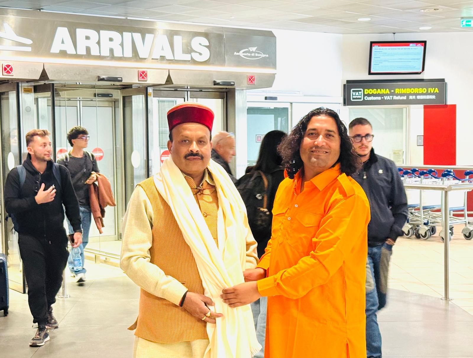 इटली के रोम एयरपोर्ट व बोलानिया एयरपोर्ट पर हुआ स्वागत: