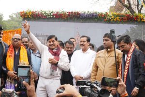 मुख्यमंत्री डॉ. मोहन यादव ने कोठी रोड पर सम्राट विक्रमादित्य विश्व विद्यालय के मंच पर छोटी-छोटी बालिकाओं द्वारा भारत माता की आरती की प्रस्तुति की सराहना करते हुए बच्चों के बीच भगवा ध्वज फहराया। एक मंच पर मुख्यमंत्री ने ड्रम बजाकर उत्साह जताया। मुख्यमंत्री डॉ. यादव ने कुश्ती महासंघ के मंच पर पहुंचकर गदा लहराई। इस दौरान पहलवानी करने वाले बच्चों का उत्साहवर्धन किया।