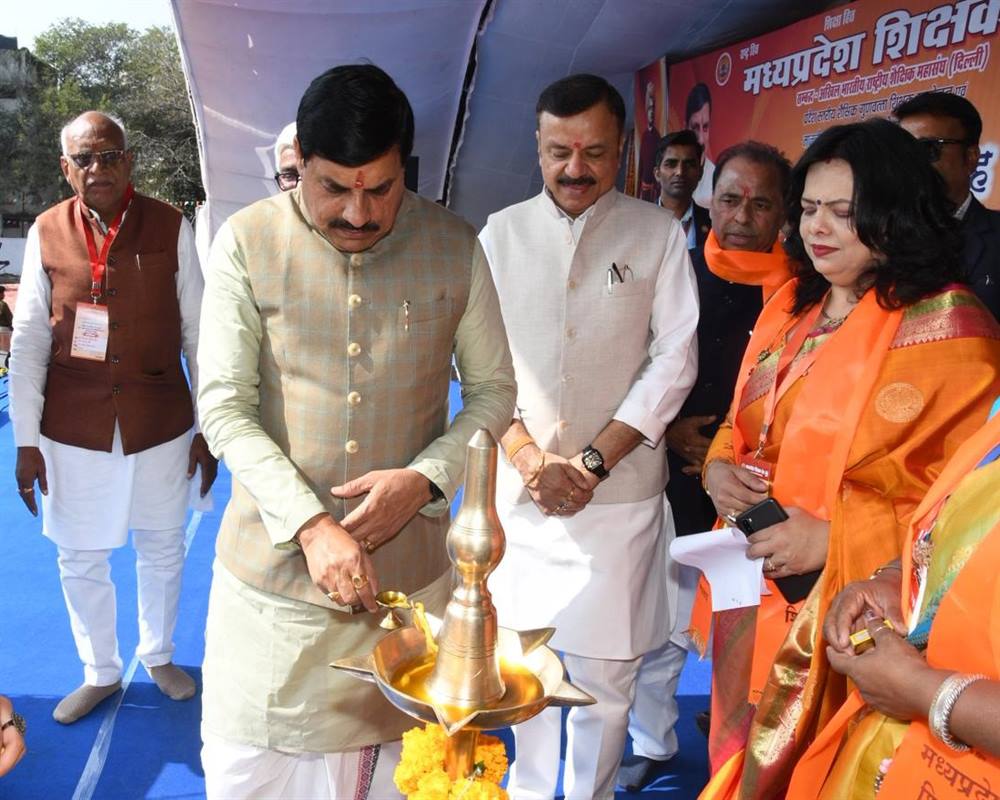 मुख्यमंत्री डॉ. मोहन यादव ने सुभाष उत्कृष्ट विद्यालय में राज्य स्तरीय शिक्षक सम्मेलन का दीप प्रज्ज्वलित कर शुभारंभ किया।