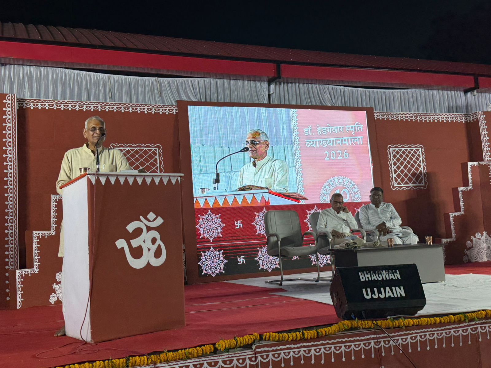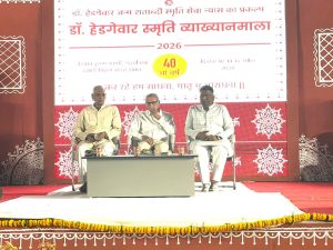 उज्जैन। डॉ. हेडगेवार जन्म शताब्दी स्मृति सेवा न्यास के प्रकल्प अंतर्गत आयोजित तीन दिवसीय डॉ. हेडगेवार स्मृति व्याख्यानमाला-2026 के दूसरे दिवस शनिवार को लोकमान्य तिलक विद्यालय, नीलगंगा रोड, माधव नगर में “वर्तमान परिप्रेक्ष्य में हिंदुत्व” विषय पर विस्तृत व्याख्यान आयोजित किया गया। कार्यक्रम के मुख्य वक्ता राष्ट्रीय स्वयंसेवक संघ के मध्य भारत प्रांत के मा. प्रांत संघचालक अशोक जी पांडेय रहे, सत्र की अध्यक्षता वरिष्ठ चिकित्सक डॉ. सुधीर गवारिकर ने की। बड़ी संख्या में शहर के प्रबुद्धजन, सामाजिक कार्यकर्ता और नागरिक उपस्थित रहे।