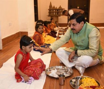 मुख्यमंत्री डॉ. मोहन यादव ने शारदीय नवरात्र की महानवमी पर बुधवार को मुख्यमंत्री निवास में कन्या-पूजन कर भोजन कराया। मुख्यमंत्री डॉ. यादव ने कन्याओं का