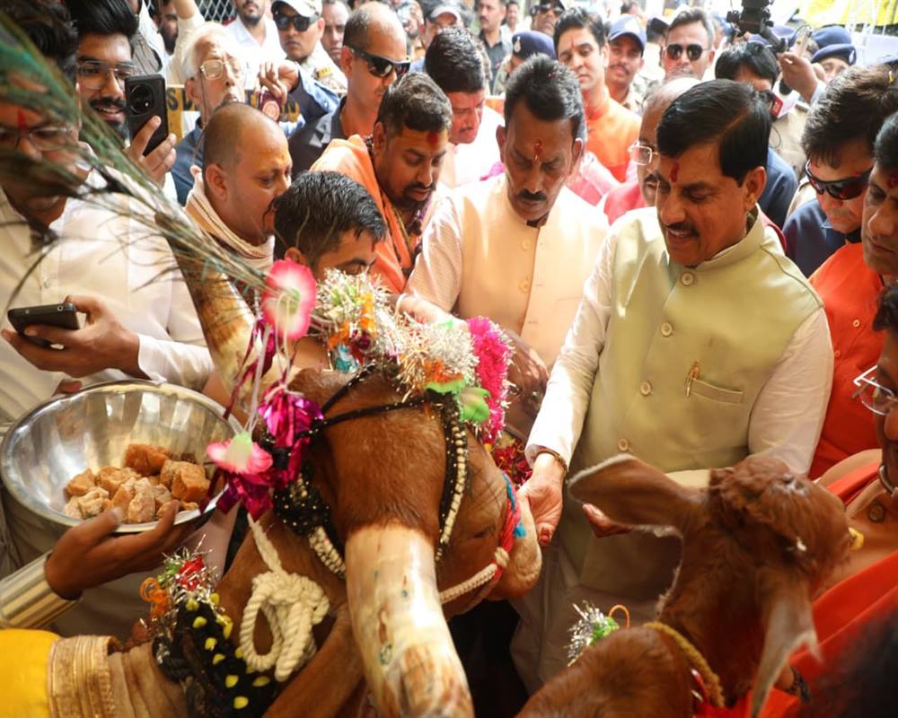 Madhya Pradesh : मुख्यमंत्री डॉ. मोहन यादव ने इंदौर के हातौद में रेशम केंद्र खजूरिया गौशाला में गोवर्धन पूजा के दौरान गौवंश का पूजन कर उन्हें दुलार किया।